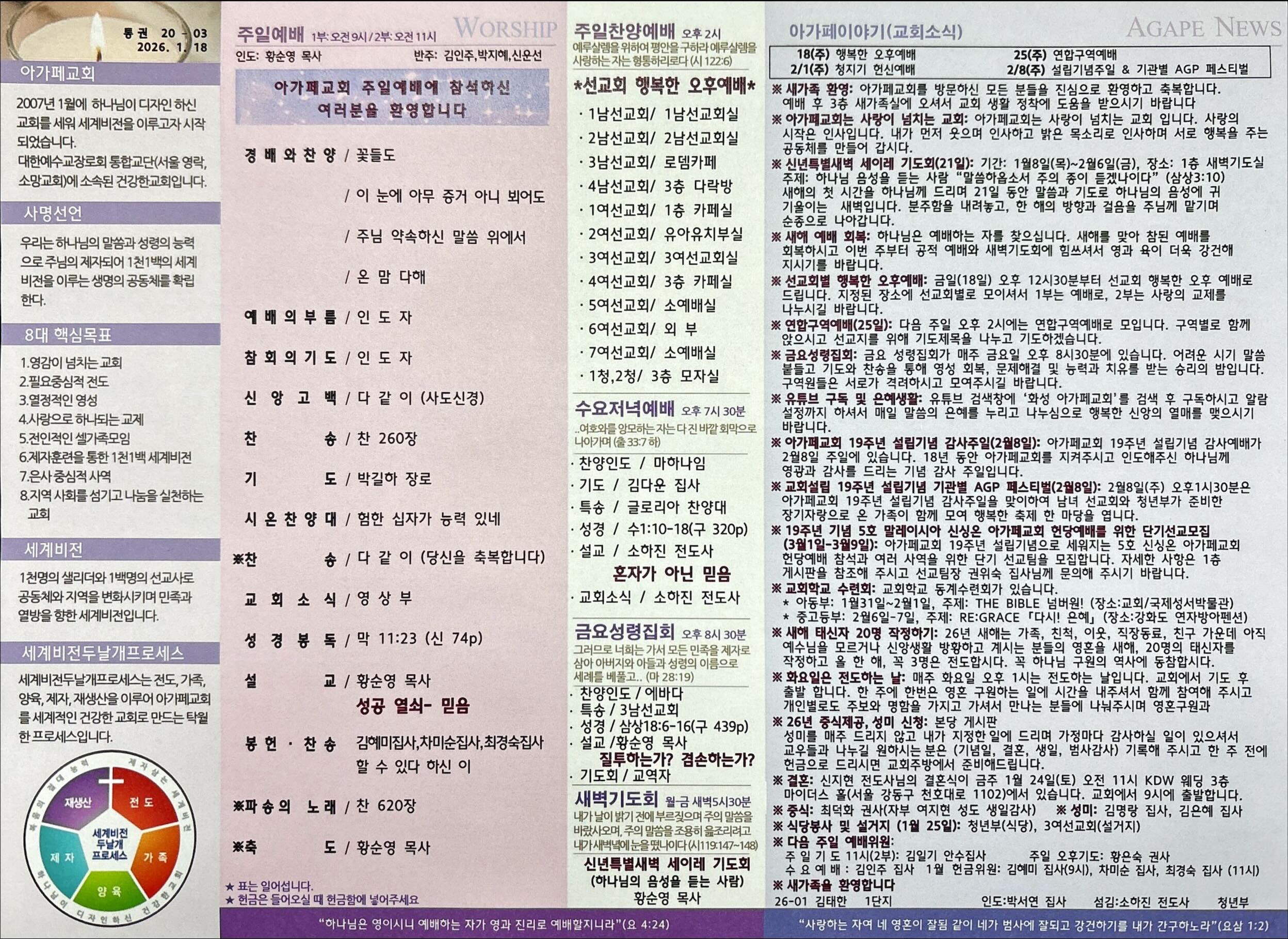샬롬! 대한예수교장로회 아가페교회에 오신걸 진심으로 환영합니다.