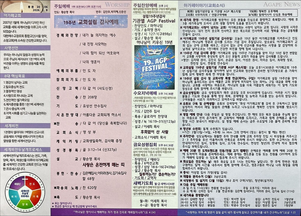샬롬! 대한예수교장로회 아가페교회에 오신걸 진심으로 환영합니다.
