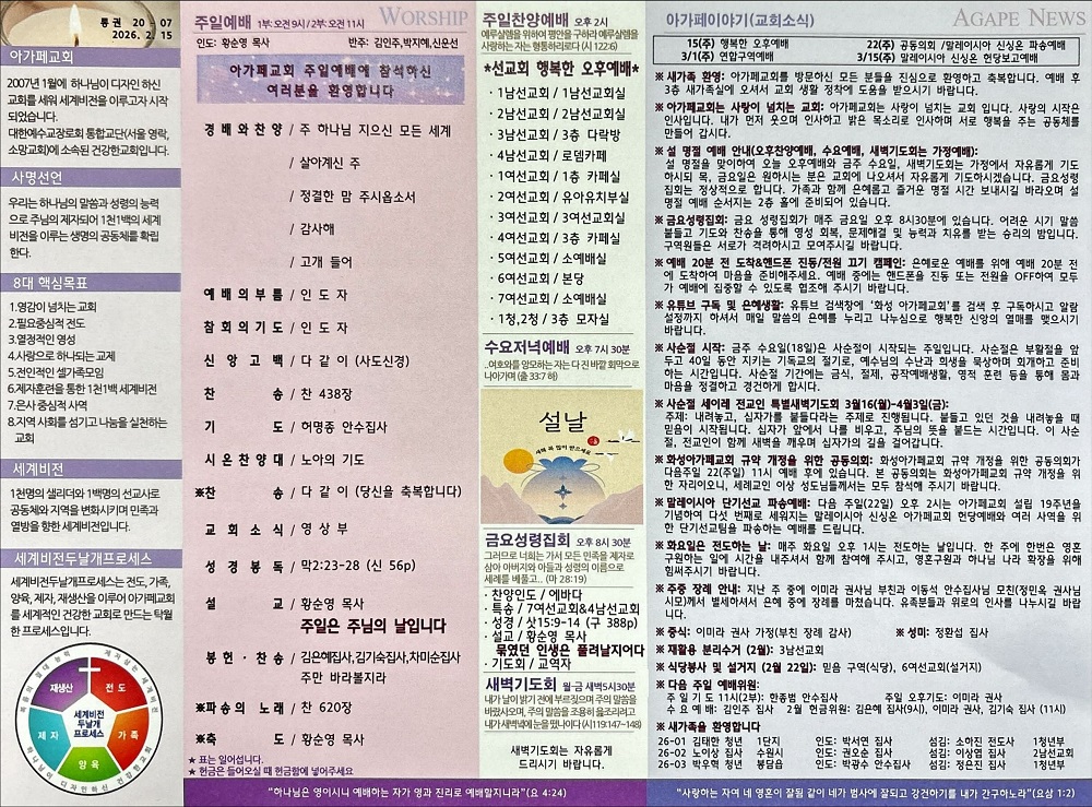 2026년 2월15일 아가페교회 소식