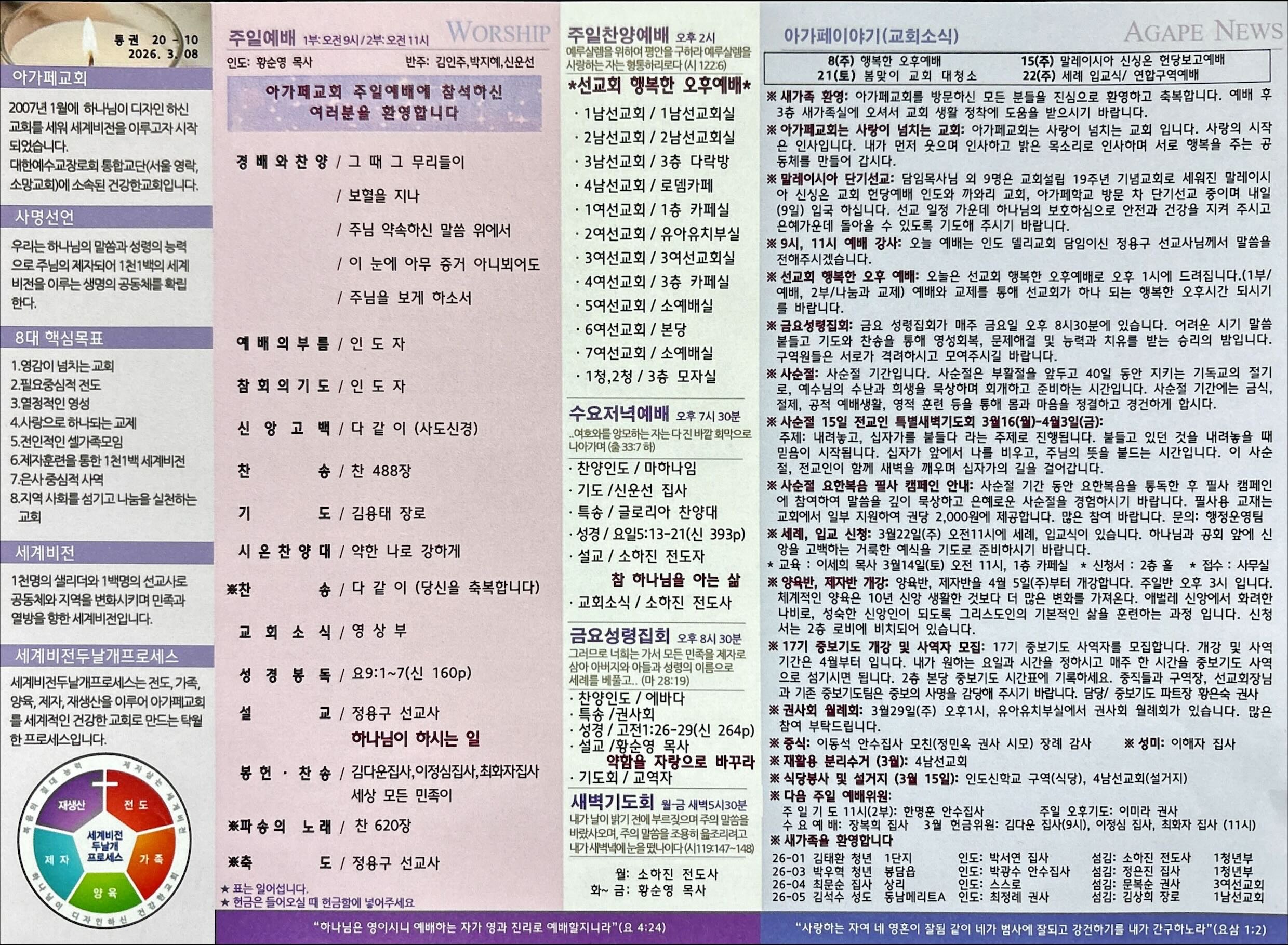 샬롬! 대한예수교장로회 아가페교회에 오신걸 진심으로 환영합니다.