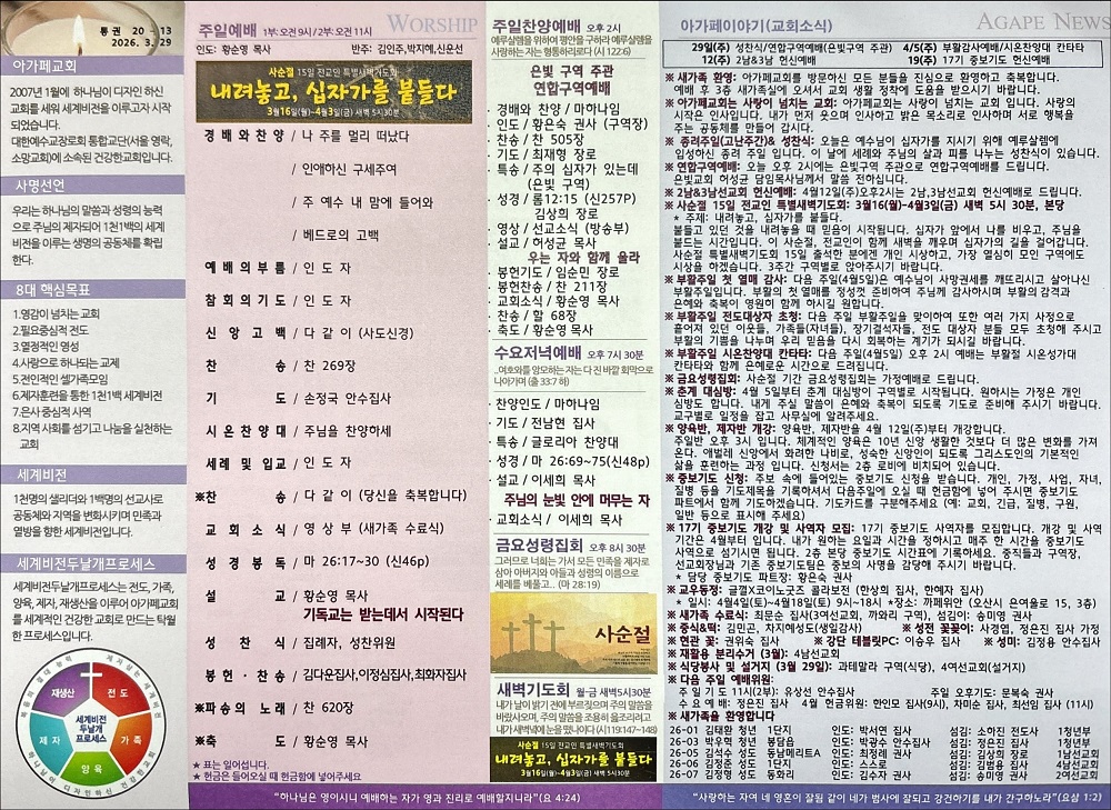 2026년 3월 29일 아가페교회 소식