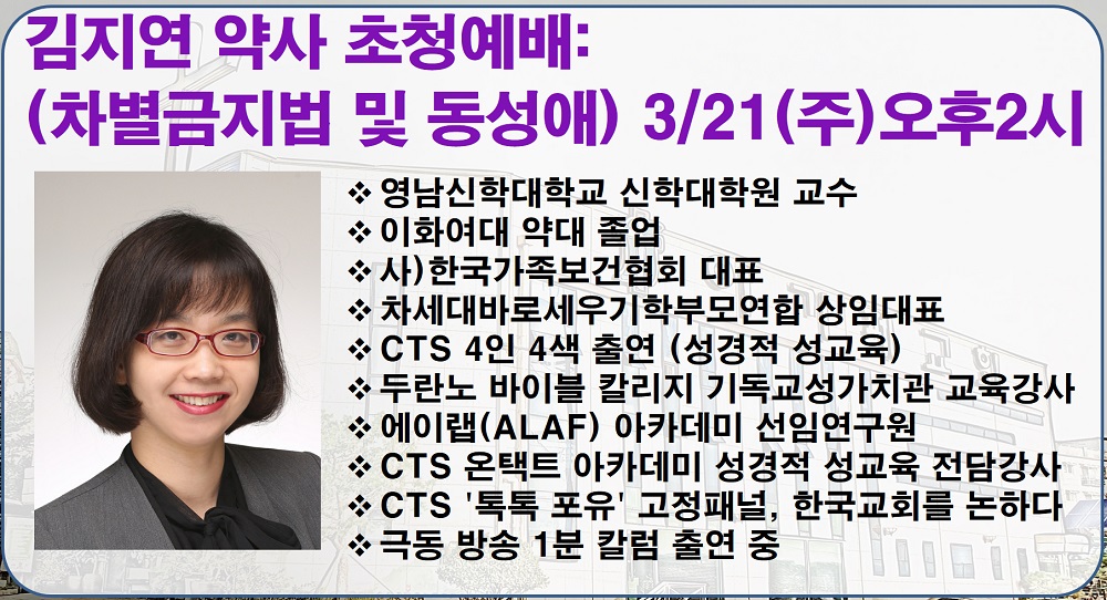[공지] 3월 21일 김지연 약사 초청예배(오후 2시)