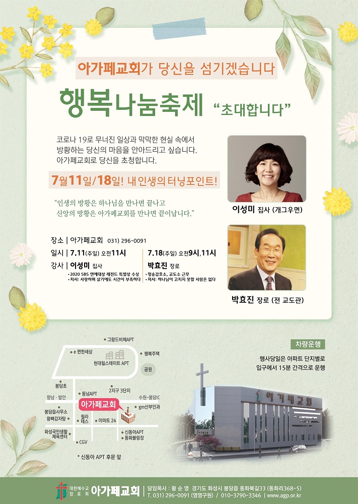 샬롬! 대한예수교장로회 아가페교회에 오신걸 진심으로 환영합니다.