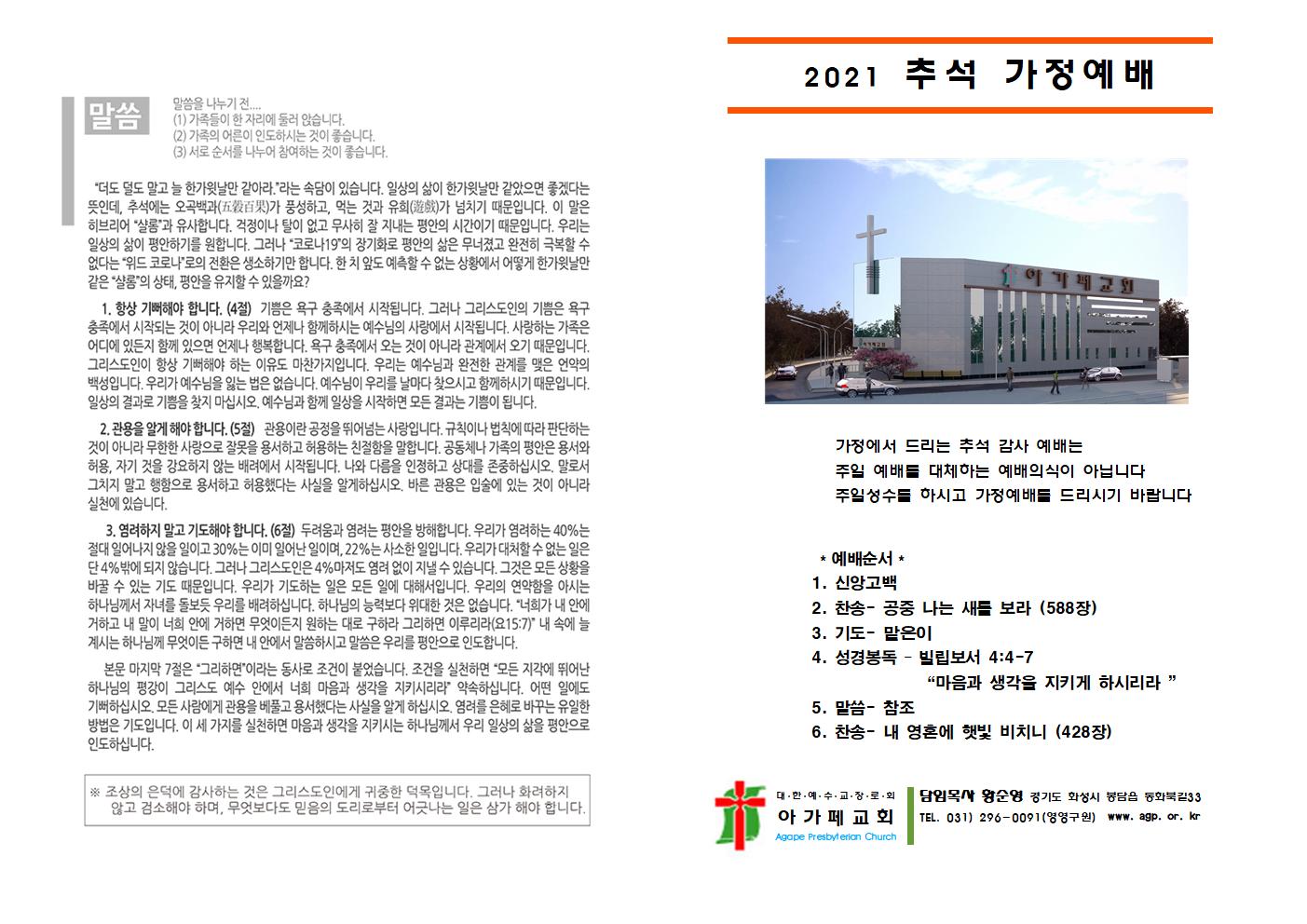 2021년 추석 명절 가정예배순서지(위의 첨부파일에서 다운로드 하셔서 사용하시면 됩니다)