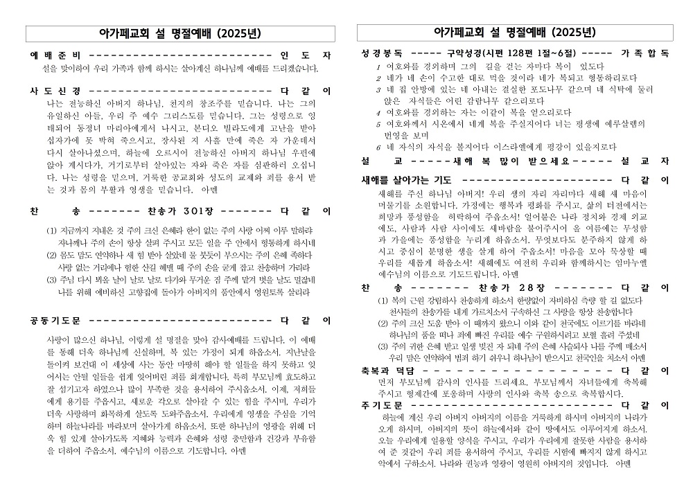 [교회주보] 2025년 설 명절 가정예배 순서지